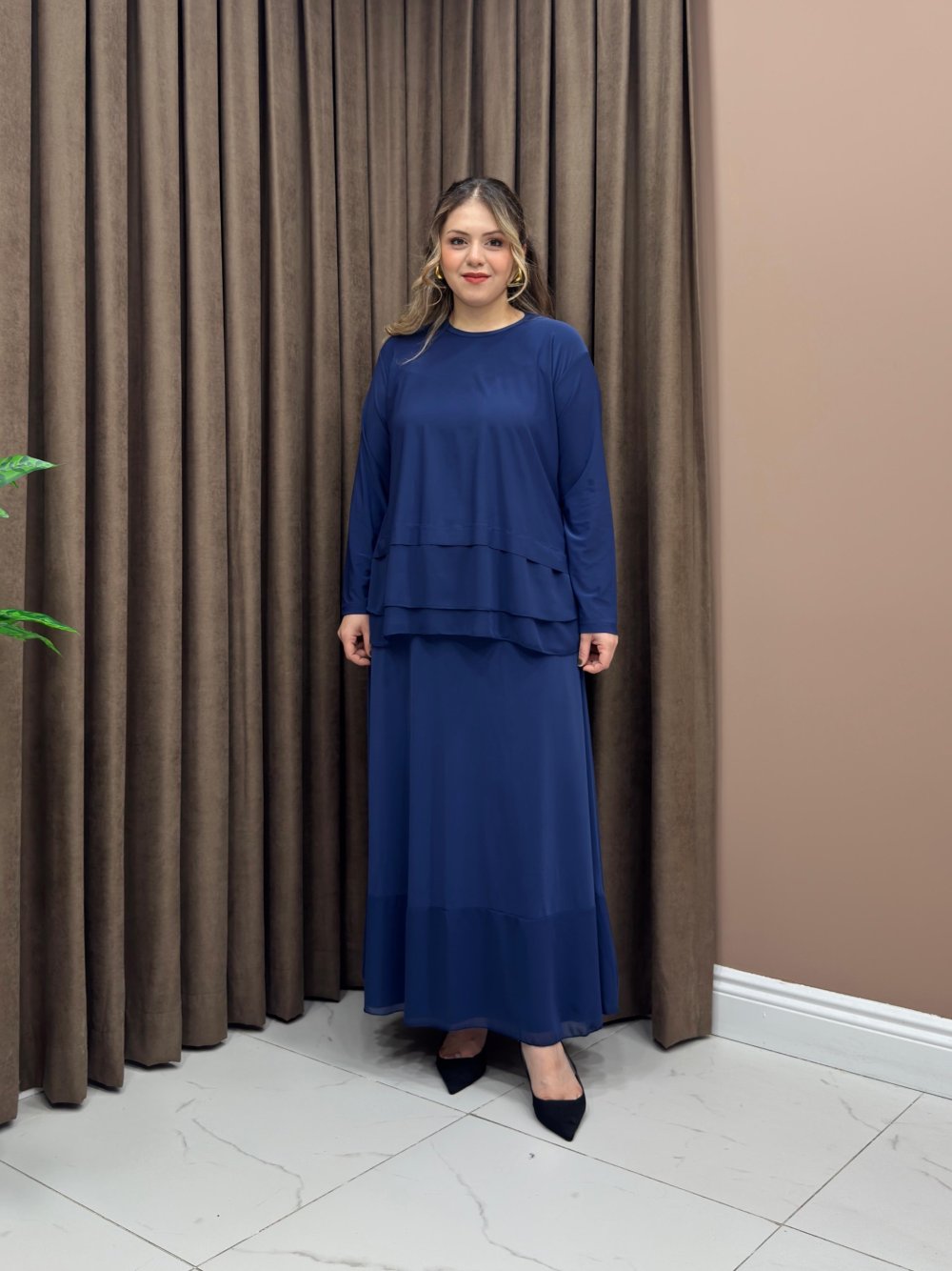 Tunik ve etek altları şifon detaylıdır.
