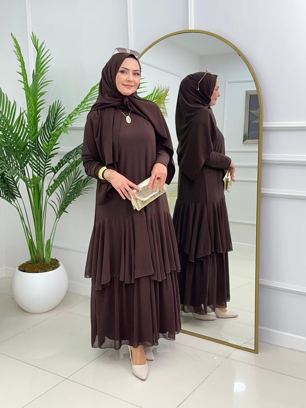 FÜSUN ELBİSE - KAHVERENGİ Acı Kahve