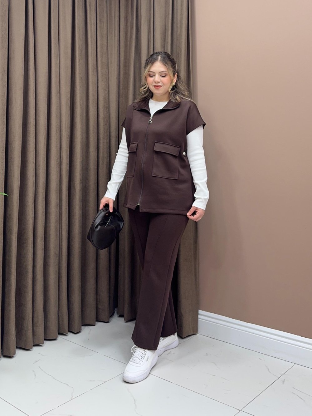 Yelek cepli ve fermuar detaylıdır.