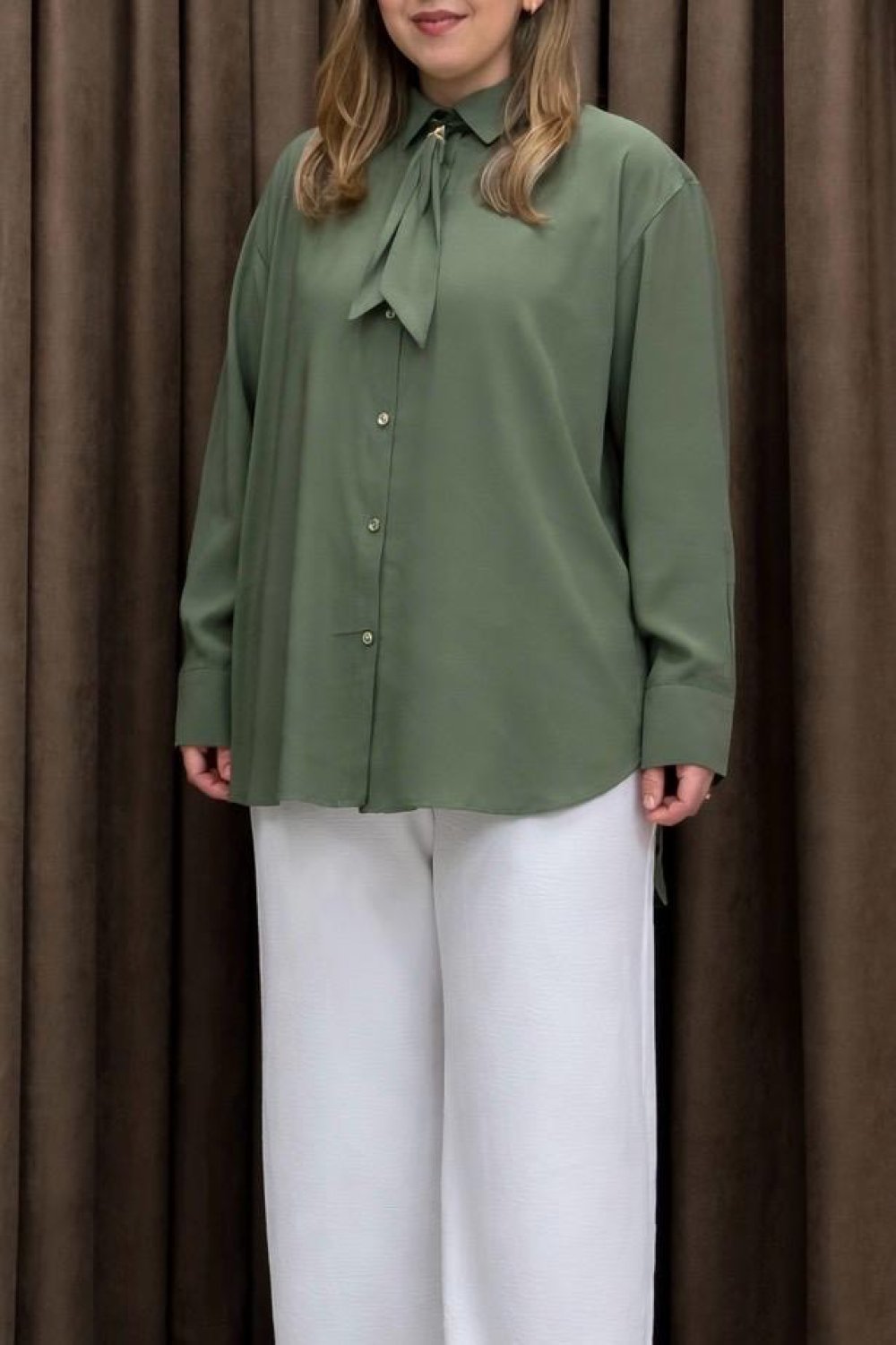 Kravatlı Modal Gömlek - Haki