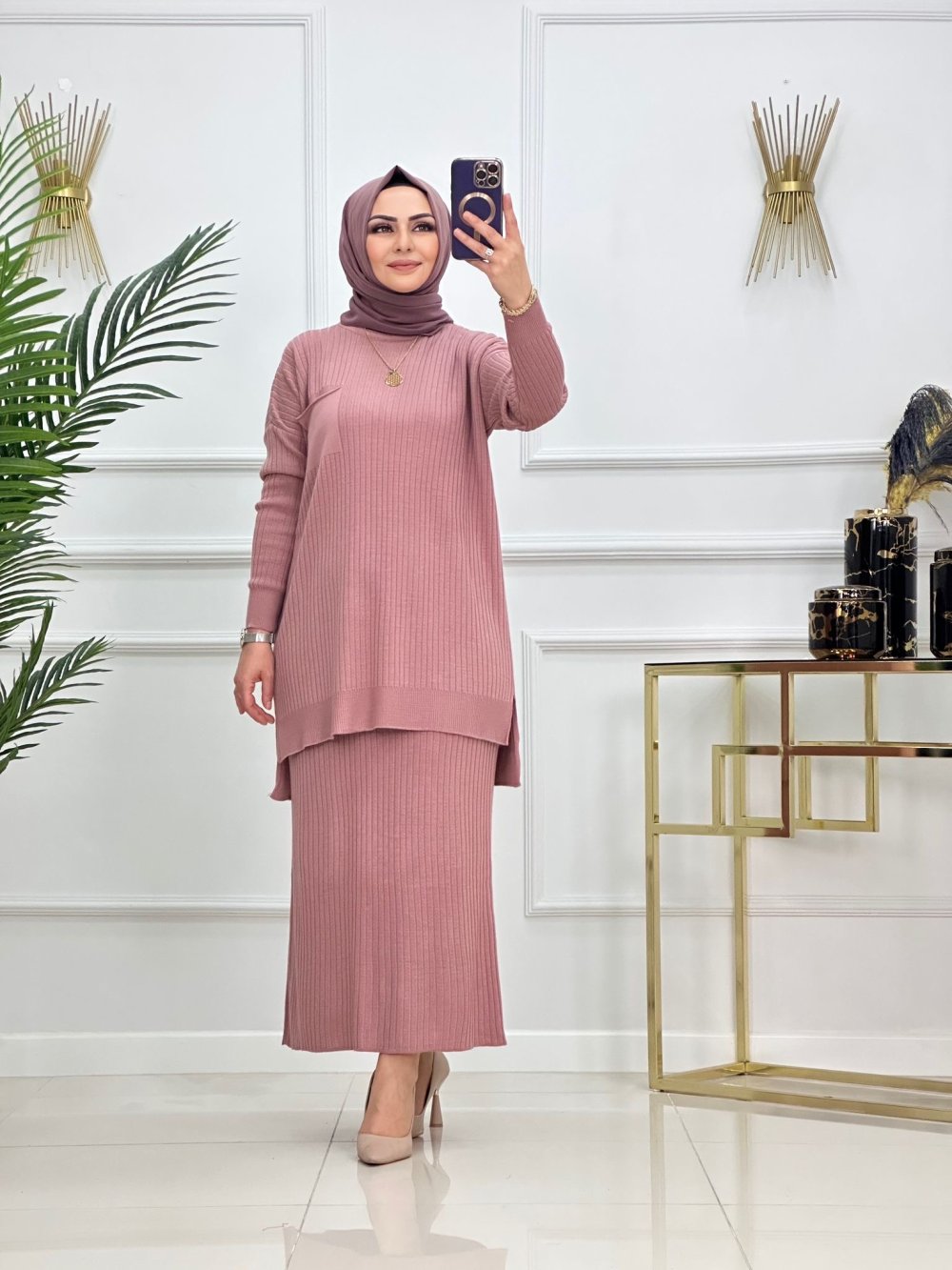 HANIM HANIMCIK ?Yumuşacık  dokusuyla  Simay triko etekli takım ?